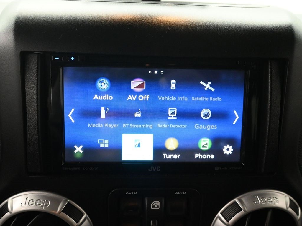 18 x 7.5 Polished Satin Carbon Wheels, Black 3-Piece Hard Top, Body Color Appliques Front Bumper, Body Color Appliques Rear Bumper, Body Color/Accent Color Grille, Connectivity Group, Delete Sunrider Soft Top, Freedom Panel Storage Bag, Quick Order Package 24G, Rear Window Defroster, Rear Window Wiper/Washer, Remote USB Port, Tire Pressure Monitoring Display, Uconnect Voice Command w/Bluetooth®, Vehicle Information Center, 3.21 Rear Axle Ratio, 4-Wheel Disc Brakes, 8 Speakers, ABS brakes, Air Conditioning, Alloy wheels, AM/FM radio: SiriusXM, Audio Jack Input for Mobile Devices, Auto-dimming Rear-View mirror, Brake assist, CD player, Cloth Seats w/Adjustable Head Restraints, Compass, Driver door bin, Driver vanity mirror, Dual front impact airbags, Electronic Stability Control, Front anti-roll bar, Front Bucket Seats, Front Center Armrest w/Storage, Front fog lights, Front reading lights, Fully automatic headlights, Heated door mirrors, Heavy Duty Suspension w/Gas Shocks (DISC), Illuminated entry, Integrated roll-over protection, Leather steering wheel, Low tire pressure warning, Manufacturer's Statement of Origin, Occupant sensing airbag, Outside temperature display, Panic alarm, Passenger door bin, Passenger vanity mirror, Power door mirrors, Power steering, Power windows, Radio data system, Radio: 130, Rear anti-roll bar, Remote keyless entry, Security system, Speed control, Split folding rear seat, Steering wheel mounted audio controls, Tachometer, Tilt steering wheel, Traction control, Trip computer, Variably intermittent wipers, **LOCAL TRADE**, **Bluetooth®**, **4WD**, 18 x 7.5 Polished Satin Carbon Wheels, Black 3-Piece Hard Top, Body Color Appliques Front Bumper, Body Color Appliques Rear Bumper, Body Color/Accent Color Grille, Connectivity Group, Delete Sunrider Soft Top, Freedom Panel Storage Bag, Quick Order Package 24G, Rear Window Defroster, Rear Window Wiper/Washer, Remote USB Port, Tire Pressure Monitoring Display, Uconnect Voice Command w/Bluetooth®, Vehicle Information Center.
