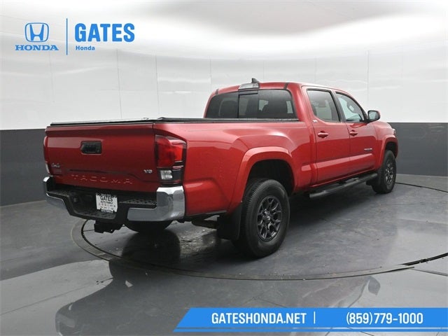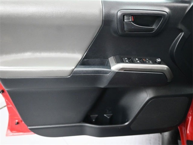 Tacoma SR5 V6, 4D Double Cab, 3.5L V6 PDI DOHC 24V LEV3-ULEV70 278hp, 6-Speed Automatic, 4WD, Red, Black Cloth, 16 Silver Alloy Wheels, 6 Speakers, ABS brakes, Air Conditioning, Alloy wheels, AM/FM radio: SiriusXM, Anti-whiplash front head restraints, Auto High-beam Headlights, Auto-dimming Rear-View mirror, Axle Ratio: 3.91, Brake assist, Bumpers: body-color, CD player, Compass, Driver door bin, Dual front impact airbags, Dual front side impact airbags, Electronic Stability Control, Entune App Suite, Exterior Parking Camera Rear, Fabric Seat Trim (FC), Front anti-roll bar, Front Bucket Seats, Front Center Armrest, Front fog lights, Front reading lights, Front wheel independent suspension, Illuminated entry, Knee airbag, Low tire pressure warning, Occupant sensing airbag, Outside temperature display, Overhead airbag, Overhead console, Panic alarm, Passenger door bin, Power door mirrors, Power steering, Power windows, Radio: Entune Plus AM/FM/CD w/Connected Navigation, Radio: Entune Premium w/AM/FM/CD/Nav/App Suite, Rear step bumper, Remote keyless entry, Speed control, Speed-sensing steering, Split folding rear seat, Steering wheel mounted audio controls, Tachometer, Telescoping steering wheel, Tilt steering wheel, Traction control, Trip computer, Variably intermittent wipers.