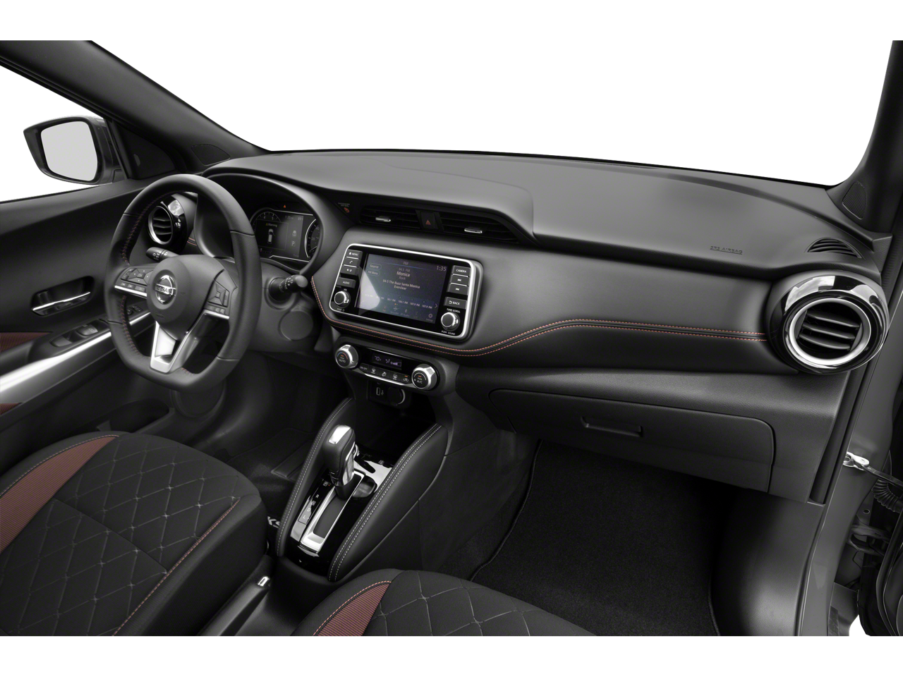 Climb inside the Kicks SR and discover a cabin that seamlessly blends style and functionality. Enjoy the convenience of features like a Center Armrest with Storage, Carpeted Floor Mats with Cargo Mat, and Splash Guards. The Kicks SR also offers the latest in connectivity and safety technology, including NissanConnect with Apple CarPlay and Android Auto, as well as Rear Parking Sensors for effortless maneuvering.
