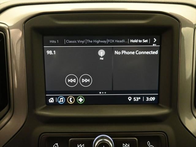 - Audio system, Chevrolet Infotainment 3 system 7" diagonal color touchscreen, AM/FM stereo. Additional features for compatible phones include: Bluetooth® audio streaming for 2 active devices, voice command pass-through to phone, wired Apple CarPlay and Android Auto capable.