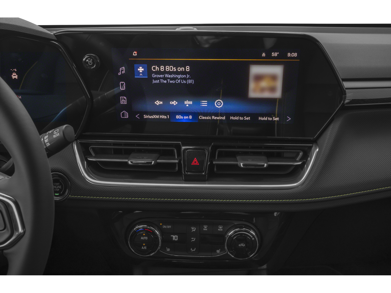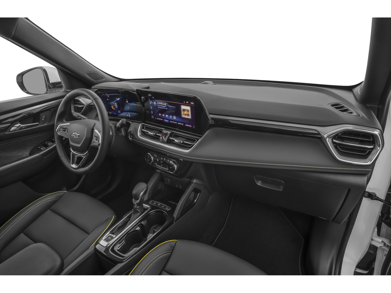 1 Type-A & 1 Type-C USB Charging-Only Ports, 1 Type-A & 1 Type-C USB Ports, 11 Diagonal HD Color Touchscreen, 120-Volt Power Outlet, 2-Way Power Driver Lumbar Seat Adjuster, 4-Way Manual Front Passenger Seat Adjuster, 4-Wheel Disc Brakes, 5.45 Final Drive Axle Ratio, 6 Speakers, 6-Speaker Audio System Feature, 8-Way Power Driver Seat Adjuster, ABS brakes, Air Conditioning, Alloy wheels, AM/FM radio: SiriusXM, Auto High-beam Headlights, Brake assist, Bumpers: body-color, Cabin Humidity Sensor, Chevrolet Connected Access Capable, Compass, Convenience Package, Delay-off headlights, Driver & Front Passenger Illuminated Vanity Mirrors, Driver Confidence Package, Driver door bin, Driver vanity mirror, Dual front impact airbags, Dual front side impact airbags, Electronic Stability Control, Emergency communication system: OnStar and Chevrolet connected services capable, Evotex Seat Trim, Exterior Parking Camera Rear, Flat-Folding Front Passenger Seatback, Front anti-roll bar, Front Bucket Seats, Front Center Armrest, Front reading lights, Front wheel independent suspension, Fully automatic headlights, Hands-Free Power Programmable Liftgate, Heated door mirrors, Heated Driver & Front Passenger Seats, Heated front seats, Heated steering wheel, Illuminated entry, Inside Rear-View Auto-Dimming Mirror, Knee airbag, Lane Change Alert w/Side Blind Zone Alert, Low tire pressure warning, Occupant sensing airbag, Overhead airbag, Overhead console, Panic alarm, Passenger door bin, Passenger vanity mirror, Power door mirrors, Power driver seat, Power steering, Power windows, Preferred Equipment Group 1SA, Radio data system, Radio: AM/FM Stereo Audio System, Rear Cross Traffic Alert, Rear Park Assist, Rear seat center armrest, Rear side impact airbag, Rear window defroster, Rear window wiper, Remote keyless entry, Ride & Handling Suspension, Security system, Single-Zone Auto Climate Control Air Conditioning, SiriusXM, Speed control, Split folding rear seat, Spoiler, Steering wheel mounted audio controls, Summit White Roof, Tachometer, Telescoping steering wheel, Tilt steering wheel, Traction control, Trip computer, Variably intermittent wipers, Wheels: 17 High Gloss Black Machined Aluminum, Wireless Apple CarPlay/Android Auto, Wireless Charging.