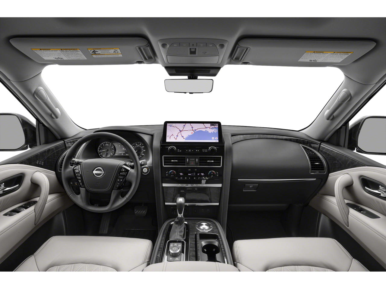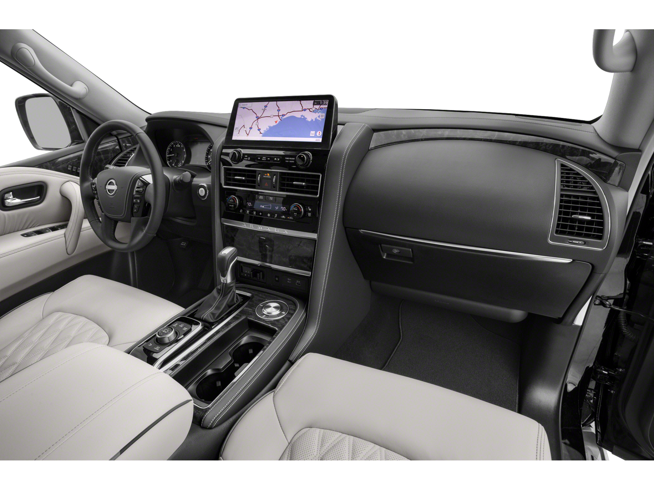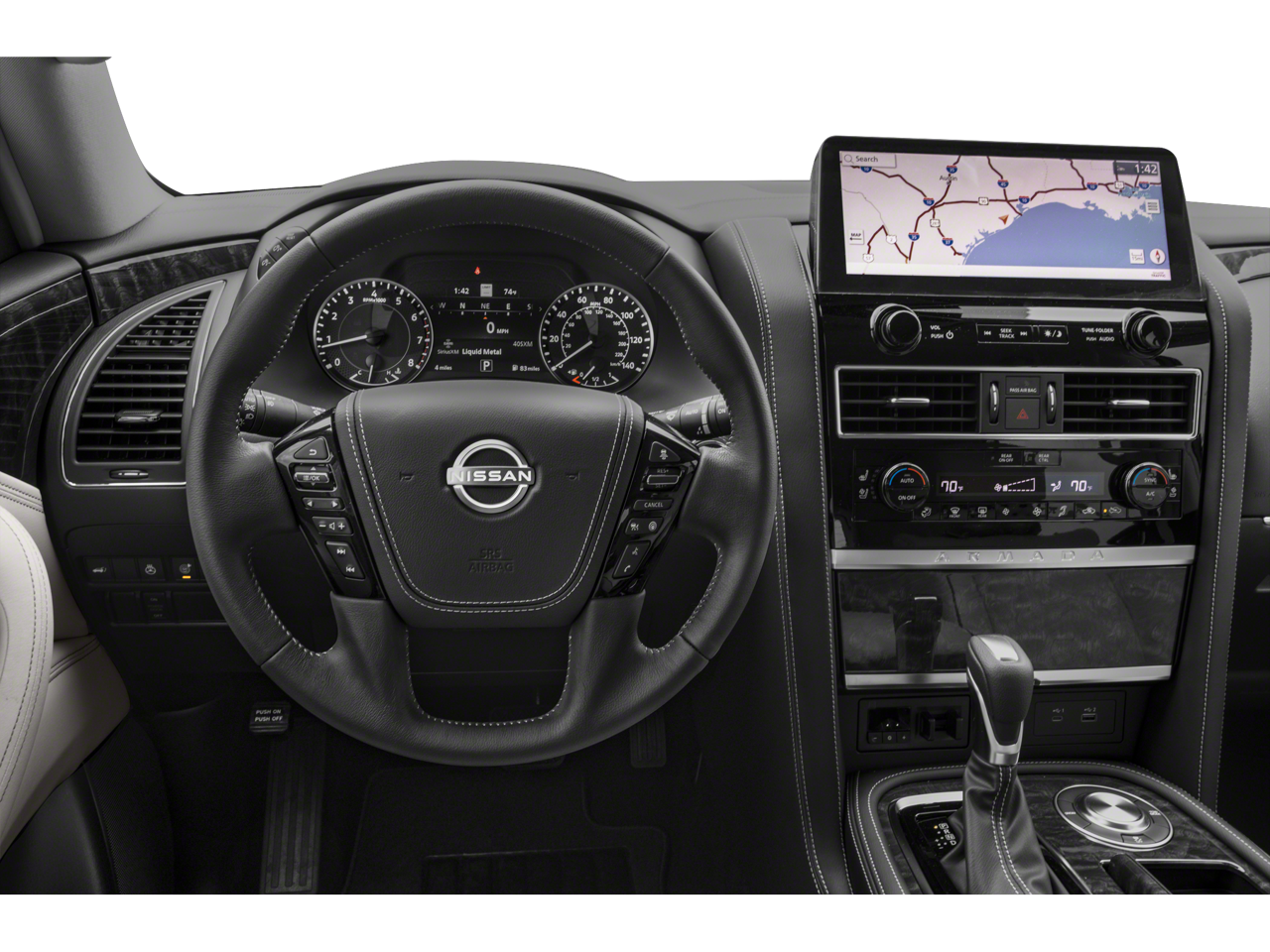 Slip into the luxurious leather-appointed interior and experience the unparalleled comfort of the Captain's Chairs Package, which includes 2nd-row captain's chairs and a center console with a padded armrest. The Armada's impressive list of premium features, such as the Navigation System, power moonroof, and advanced safety technologies, elevate your driving experience to new heights.