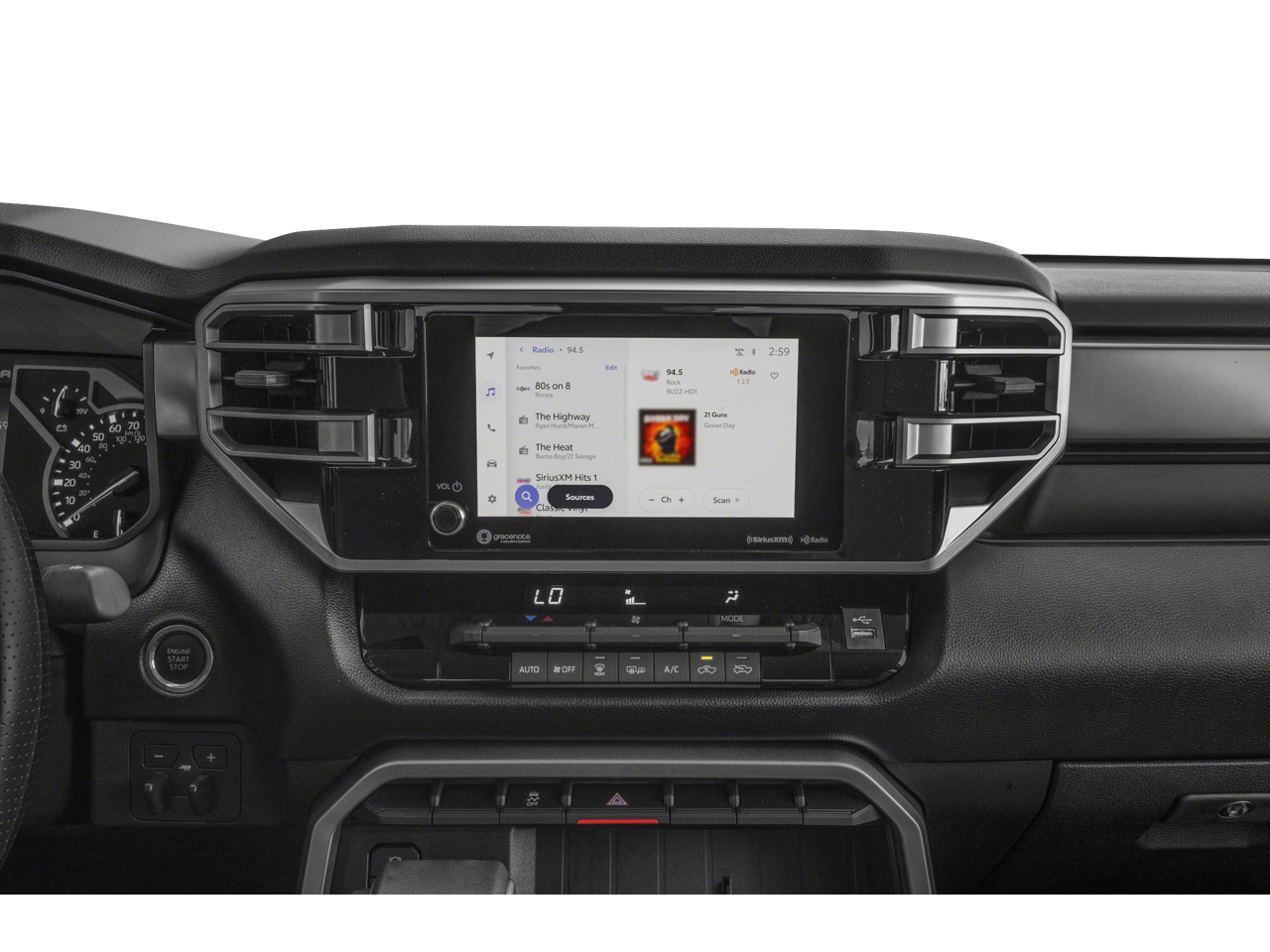 The interior of this Tundra is designed with your comfort and convenience in mind. Enjoy the premium SofTex seat trim, heated front seats, and a spacious, versatile cabin that can accommodate your passengers and cargo with ease. The 32-gallon fuel tank ensures you can go the distance without frequent stops.